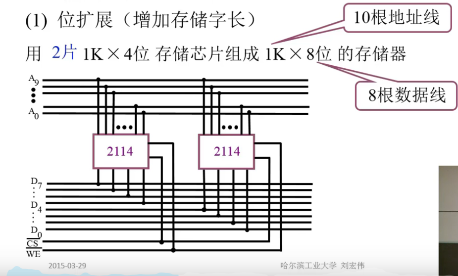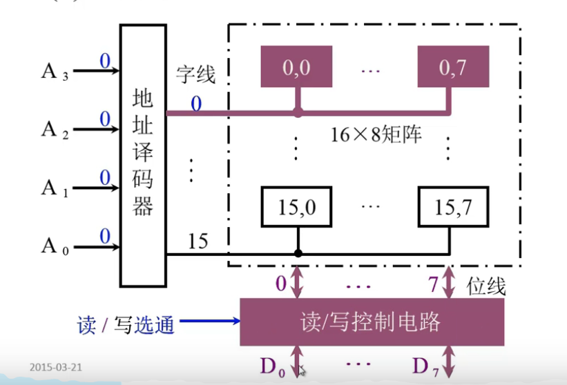 0~7共 8根位线代表存储字长为8位(每个存储单元为8位)