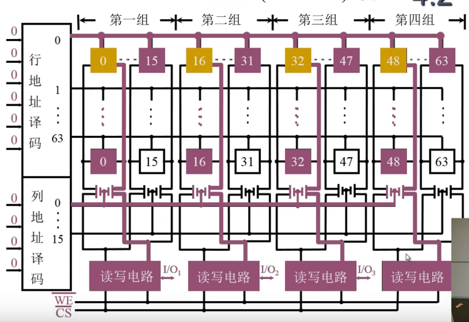 A四根地址线代表有16 个存储单元,对应 0~15共16根字线