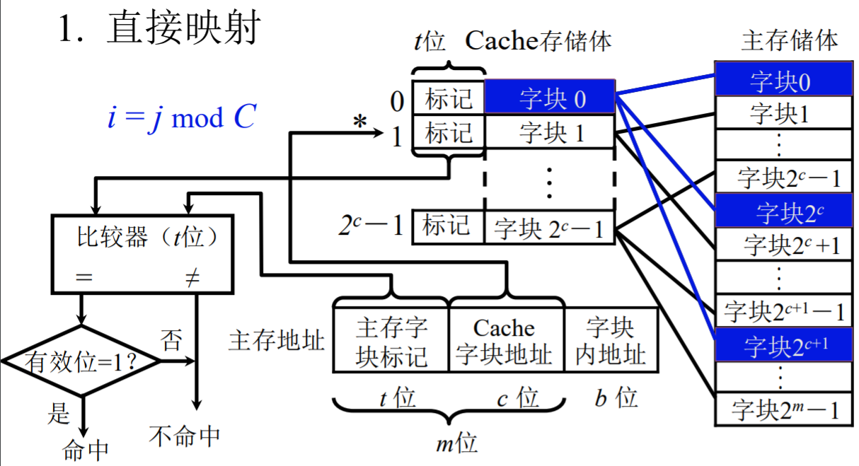 主存字块标记:可以理解为区号,标注给出的地址要访问的字块位于主存的哪个区