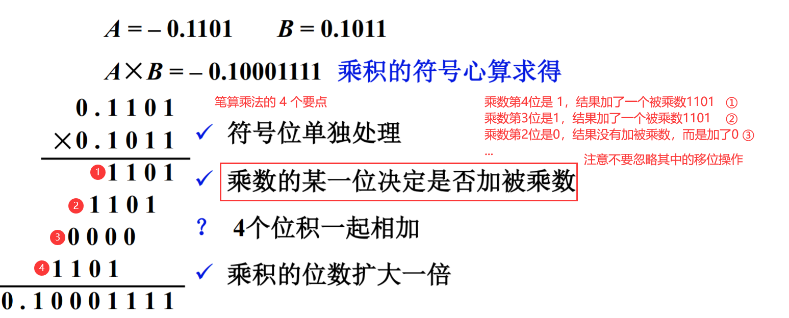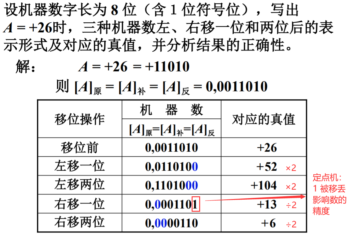 如图 要注意:符号位是单独另外考虑的,这里只涉及数据位的计算。(整体移位的原因)