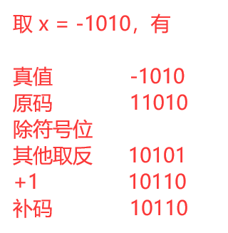 同时,当真值为负时,通过补码计算原码的方法:原码 可用 补码除符号位外 每位取反,末位加 1 求得