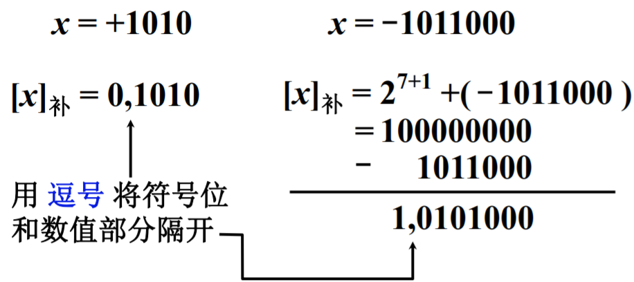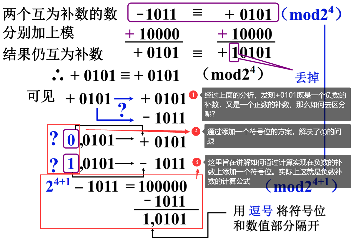 补充一个知识:假如以$2^k$为模,那么符号位就是k个。符号位有k个1或0,真值部分不变)