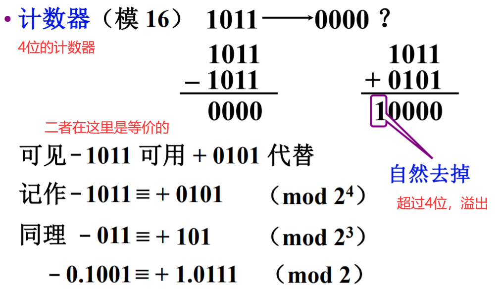 什么时候-3和+9等价? $-3 \equiv 9 ,(mod ,12)$ ,称+9是-3以12为模的补数。