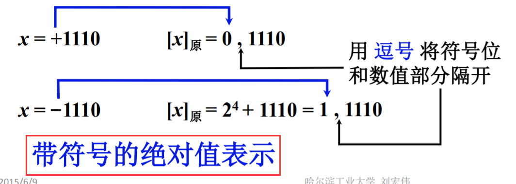 最高位为符号位,用指定符号将 数值部分 和 符号位 隔开