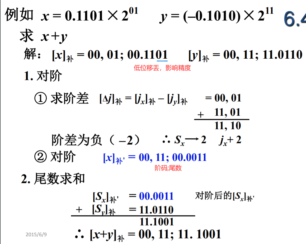 计算机采用的对阶原则是:小阶向大阶看起。原因:高位丢失影响大小,低位丢失影响精度。