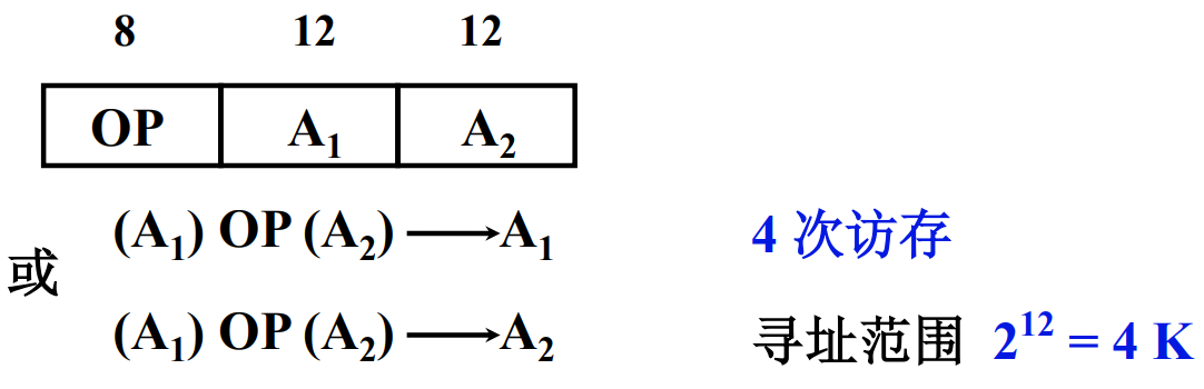 若使用ACC(累加器)替代 A1或A2,将结果保存在ACC中,就成了一地址指令。