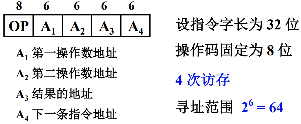 A 的位数决定了该指令操作数的寻址范围(做题时可根据直接寻址范围逆推A的位数)