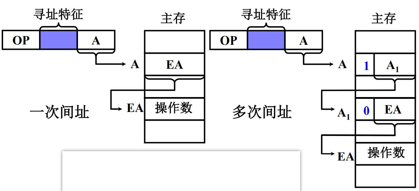 N次间接寻址:形式地址保存存储单元 A1地址, A1保存 A2的地址…最后的 An保存的才是操作数的真实地址