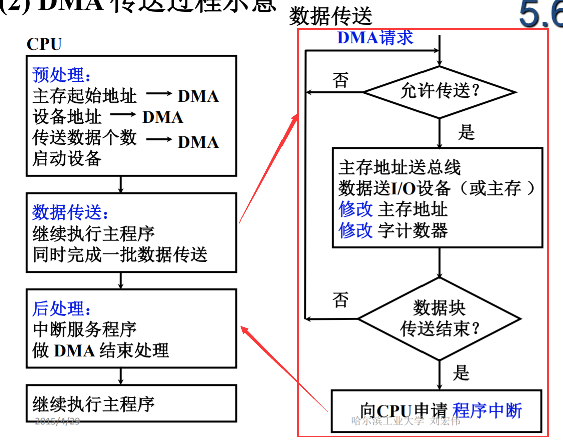 特点:在信息传输过程中、信息传输完成后,CPU仍要参与部分信息传输的处理工作。