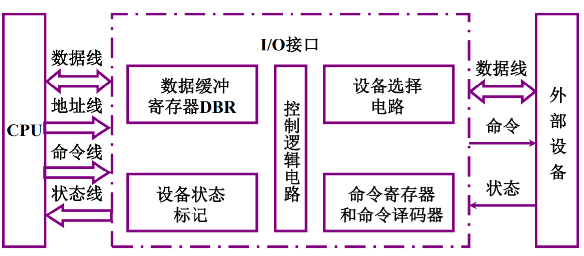 I/O接口和I/O设备采用应答信号,比如,当I/O设备要接收数据时