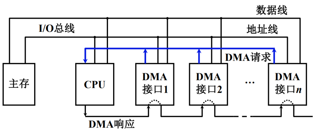 CPU和DMA同时请求访存:此时 CPU 将总线控制权、主存访问权让给 DMA